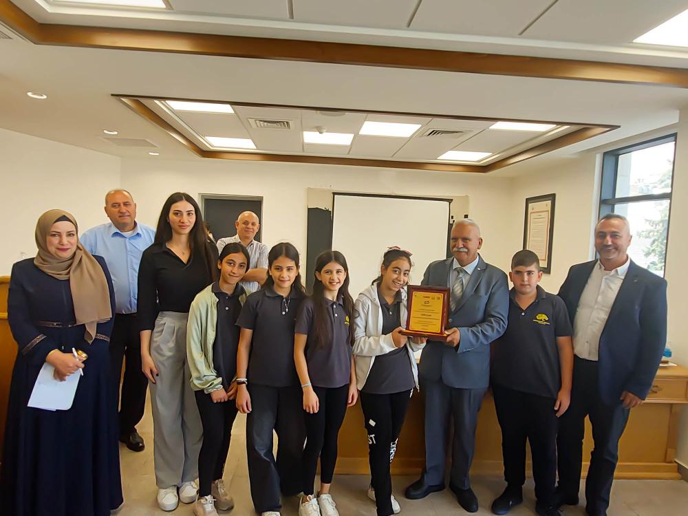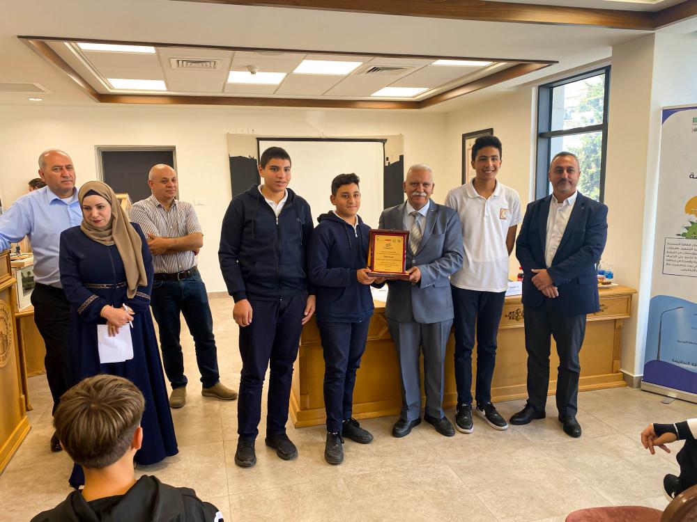 At the end of the event, Mr. Issa Qassis, Mayor of Beit Jala, delivered a speech expressing his gratitude to all participating schools and students for their creativity and outstanding efforts in developing environmental projects. He also thanked the judging panel for their role in selecting the winners, emphasizing that this competition marks an important step toward raising awareness among future generations about environmental conservation and the adoption of sustainable technologies for a better future in our cities. All participants were honored in recognition of their exceptional contributions.